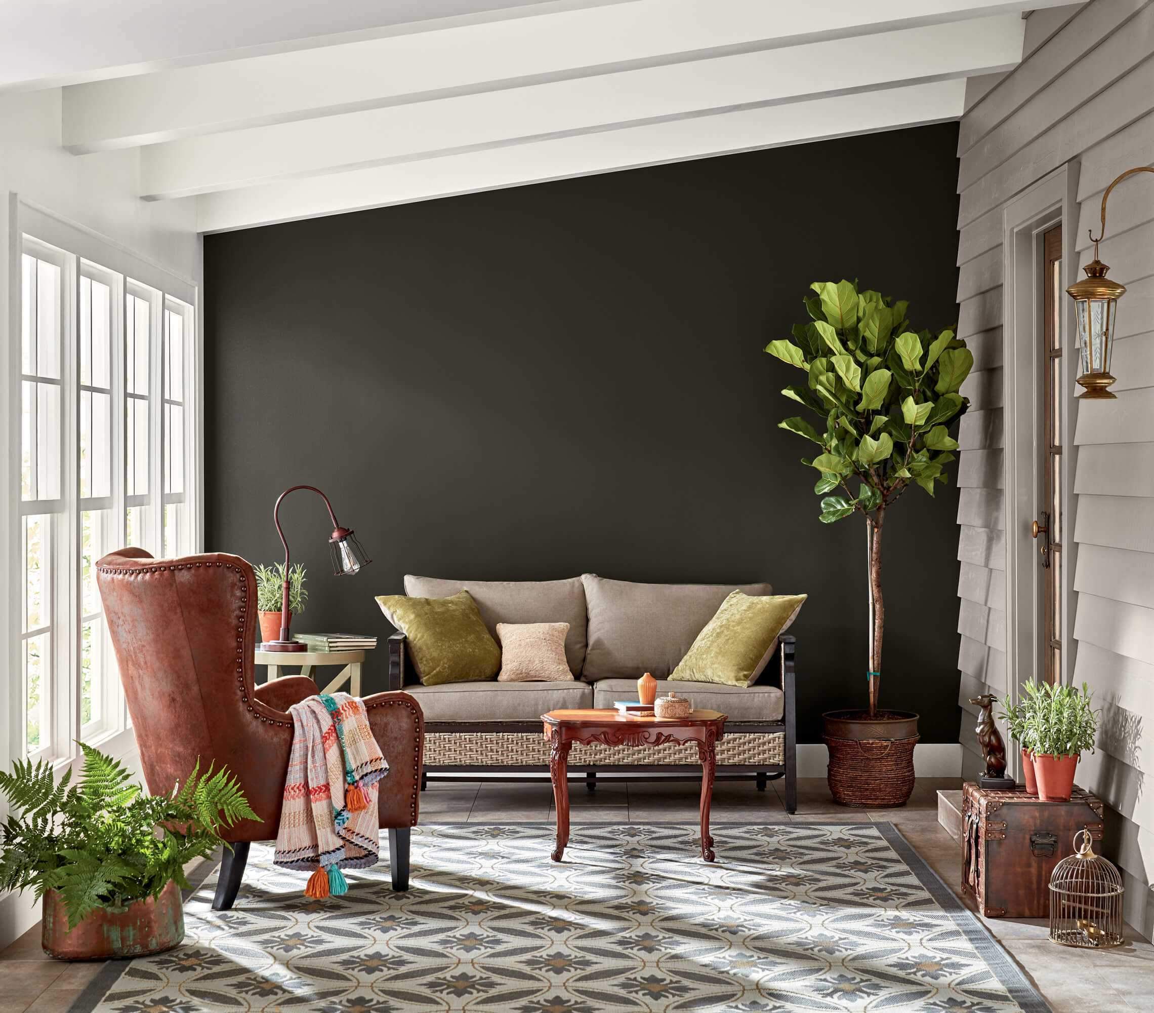 Dark painted walls can work in both large and small spaces, providing a grounding effect that gives the eye a place to rest.